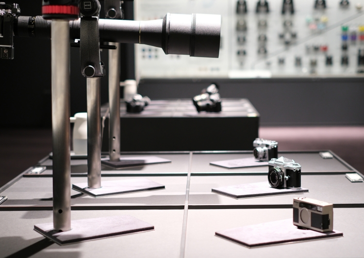 「コンシューマーゾーン」には、歴代のカメラ本体、レンズ、双眼鏡などがずらりと並んでいます。